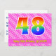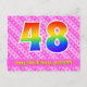 El frente de este diseño de tarjeta postal temática de cumpleaños alegre, animado y alegre presenta un gran número "48" con un patrón inspirado en gradiente de espectro de arcoíris. También presenta el mensaje "Feliz cumpleaños 48" y un nombre de destinatario personalizado. La parte delantera presenta además un patrón feliz de rayas rosadas claras y oscuras con formas de corazón. La parte trasera presenta un mensaje de saludo de cumpleaños personalizable, o quizás podría estar despejado y dejado en blanco si se va a escribir un mensaje a mano en su lugar. Una tarjeta postal de cumpleaños personalizable como esta podría ser una forma divertida de enviar un mensaje para celebrar el cumpleaños número cuarenta y ocho de alguien. Las tarjetas postales como esta también podrían utilizarse para invitar a los invitados a una celebración de cumpleaños que se celebra para alguien que cumple 48 años.