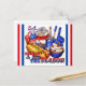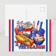 Una colorida tarjeta postal de felicitación americana roja, blanca y azul para la celebración del Día de la Independencia del 4 de julio