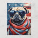 Un colorido diseño del Día de la Independencia con un Pug con gafas de sol