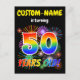 El frente de este divertido y animado diseño de postales de invitación a fiestas de cumpleaños tiene un nombre editable, un emocionante y reventador patrón inspirado en fuegos artificiales de celebración, y el mensaje "¡50 AÑOS!" tiene un colorido patrón de gradiente inspirado en el espectro del arco iris. En la parte posterior aparece un mensaje personalizado con información sobre el fiesta, como cuándo y dónde se está reteniendo. Este tipo de tarjetas postales de invitación pueden ser enviadas a los potenciales invitados de un fiesta que se celebra para celebrar el cumpleaños de alguien que cumple 50 años. [~Z0000452]