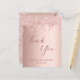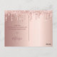 A thank you card for a 50th birthday. A rose gold faux metallic looking background color. With faux glitter drips, paint drip look. On front large dark rose gold colored hand lettered script and the text: Thank You, your text, title and a date.