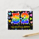 El frente de este diseño de tarjeta postal temática de cumpleaños, amoroso, colorido y divertido, presenta un gran número "52" con un patrón inspirado en gradiente de espectro de arcoíris. También presenta el mensaje "Feliz cumpleaños 52" y un nombre de destinatario personalizable. La parte delantera presenta además un patrón vibrante y colorido de corazones amorosos. La parte posterior presenta un mensaje de saludo de cumpleaños personalizable, o quizás podría estar despejado y dejado en blanco si se desea escribir un mensaje a mano. Una tarjeta postal de cumpleaños personalizada como esta podría ser una forma divertida de enviar un mensaje para celebrar el cumpleaños número cincuenta y dos de alguien. Tarjetas postales como esta también podrían usarse para invitar a invitados a una celebración de cumpleaños o fiesta que se organice para alguien que cumple 52 años. [~Z0000448]