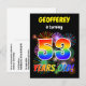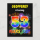 La parte frontal de este divertido y vibrante diseño de tarjeta postal de invitación a fiesta de cumpleaños tiene un nombre personalizable, un emocionante patrón inspirado en fuegos artificiales de celebración que estallan, y el mensaje "¡53 AÑOS!" con un patrón de gradiente inspirado en el espectro del arcoíris colorido. La parte posterior presenta un mensaje editable con información sobre la fiesta, como cuándo y dónde se llevará a cabo. Tarjetas postales de invitación como esta podrían enviarse a posibles asistentes a una fiesta de cumpleaños que se celebra en conmemoración del cumpleaños número cincuenta y tres de alguien.