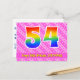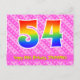 El frente de este diseño de tarjeta postal temática de cumpleaños feliz, alegre y cariñosa presenta un gran número "54" con un patrón inspirado en gradiente de espectro de arcoíris, junto con el mensaje "Feliz cumpleaños 54", y un nombre de destinatario personalizado. El frente también presenta formas de corazón felices de color rosa claro y rosa oscuro y un patrón de rayas. La parte trasera presenta un mensaje de saludo de cumpleaños personalizable, o quizás podría estar despejado y en blanco si se desea escribir un mensaje a mano. Una tarjeta postal de cumpleaños personalizada como esta podría ser una forma divertida de enviar un mensaje para celebrar el cumpleaños número cincuenta y cuatro de alguien. Tarjetas postales como esta también podrían usarse para invitar a invitados a una fiesta de cumpleaños o celebración que se organice para alguien que cumple 54 años. [~Z0000449]