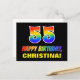 La parte delantera de este divertido, alegre y colorido diseño de postal temático de cumpleaños incluye un gran número "55" y el mensaje "FELIZ CUMPLEAÑOS", ambos coloreados con un patrón inspirado en el gradiente del espectro del arcoiris, junto con un audaz nombre de destinatario personalizado amarillo. La parte delantera también tiene un fondo mínimo, sencillo, de color negro. En la parte posterior de la tarjeta postal aparece un mensaje de bienvenida de cumpleaños del personalizado, o tal vez se podría borrar y dejar en blanco si se va a escribir un mensaje a mano. Una tarjeta postal vibrante de cumpleaños de personalizable como esta podría ser una manera divertida de reconocer los cincuenta años de alguien. [~Z0000474]