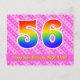 El frente de este diseño de tarjeta postal con tema de cumpleaños alegre, animado y feliz presenta un gran número "56" con un patrón inspirado en el gradiente del espectro del arcoíris, junto con el mensaje "Feliz cumpleaños 56", y un nombre de destinatario editable. La parte delantera presenta además un patrón alegre a rayas rosa oscuro y rosa claro con formas de corazón. La parte posterior presenta un mensaje de saludo de cumpleaños personalizable, o quizás podría estar despejado y en blanco si se desea escribir un mensaje a mano. Una tarjeta postal de cumpleaños personalizada como esta podría ser una forma divertida de enviar un mensaje para celebrar el cumpleaños número cincuenta y seis de alguien. Tarjetas postales como esta también podrían usarse para invitar a los invitados a una celebración de cumpleaños que se celebra para alguien que cumple 56 años. [~Z0000449]