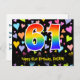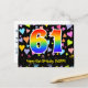 El frente de este diseño de tarjeta postal temática de cumpleaños emocionante, colorido y afectuoso presenta un gran número "61" con un patrón inspirado en el gradiente del espectro del arcoíris, junto con el mensaje "Feliz cumpleaños 61", y un nombre de destinatario personalizado. La parte delantera presenta además un patrón vibrante y colorido de corazones afectuosos. La parte trasera presenta un mensaje de saludo de cumpleaños personalizado, o quizás podría estar en blanco si se desea escribir un mensaje a mano. Una tarjeta postal de cumpleaños personalizada como esta podría ser una forma divertida de enviar un mensaje para celebrar el cumpleaños número sesenta y uno de alguien. Tarjetas postales como esta también podrían usarse para invitar a los invitados a una fiesta de cumpleaños o celebración que se organice para alguien que cumple 61 años.