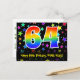 El frente de este divertido, colorido y emocionante diseño de tarjeta postal temática de cumpleaños presenta un gran número "64" con un patrón inspirado en el gradiente del espectro del arcoíris, junto con el mensaje "Feliz cumpleaños 64", y un nombre de destinatario personalizable. La parte delantera tiene además un vibrante y colorido patrón de fondo con formas de estrellas. La parte trasera presenta un mensaje de felicitación de cumpleaños editable, o quizás podría borrarse y dejarse en blanco si se desea escribir un mensaje a mano en su lugar. Una tarjeta postal de cumpleaños personalizable como esta podría ser una forma divertida de reconocer el cumpleaños número sesenta y cuatro de alguien. Tarjetas postales como esta también podrían usarse para invitar a invitados a una celebración de cumpleaños que se celebra para alguien que cumple 64 años. [~Z0000447]