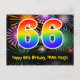 Postal 66 cumpleaños - Divertido patrón de fuegos artific