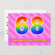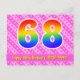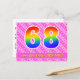 El frente de este diseño de tarjeta postal temática de cumpleaños alegre, animado y divertido presenta un gran número "68" con un patrón de gradiente de espectro de arcoíris, junto con el mensaje "Feliz cumpleaños 68", y un nombre de destinatario personalizable. La parte delantera presenta además un patrón alegre a rayas rosa claro y rosa oscuro con formas de corazón. La parte posterior presenta un mensaje de saludo de cumpleaños personalizado, o quizás podría estar en blanco si se desea escribir un mensaje a mano. Una tarjeta postal de cumpleaños personalizable como esta podría ser una forma divertida de celebrar el cumpleaños número sesenta y ocho de alguien. Tarjetas postales como esta también podrían usarse para invitar a los invitados a una celebración de cumpleaños que se celebra para alguien que cumple 68 años.