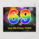 Postal 69 cumpleaños - Divertido patrón de fuegos artific