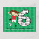 Un lindo diseño de fútbol para el sexto cumpleaños de un futuro jugador de fútbol o hincha de fútbol, con un gran número seis con pelotas de fútbol y la palabra "gol" escrita dentro. Un joven chica de fútbol vestido con uniforme rojo y blanco se para al lado del número. Perfecto para agradecer a la familia y amigos por hacer tan especial su cumpleaños. Hay otros números y colores de equipo disponibles.