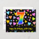 Postal 7º Cumpleaños: Estampado de Corazones Divertidos,