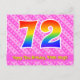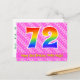 El frente de este divertido, animado y afectuoso diseño de tarjeta postal temática de cumpleaños presenta un gran número "72" con un patrón de gradiente de espectro de arcoíris. También presenta el mensaje "Feliz cumpleaños número 72" y un nombre de destinatario editable. El frente también tiene un patrón de rayas felices de color rosa oscuro y rosa claro con formas de corazón. La parte trasera presenta un mensaje de saludo de cumpleaños editable, o quizás podría borrarse y dejarse en blanco si se va a escribir un mensaje a mano en su lugar. Una tarjeta postal de cumpleaños personalizable como esta podría ser una forma divertida de reconocer el cumpleaños número setenta y dos de alguien. Las tarjetas postales como esta también podrían usarse para invitar a los invitados a una celebración de cumpleaños que se celebra para alguien que cumple 72 años.