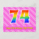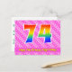 El frente de este diseño de tarjeta postal temática de cumpleaños alegre, divertida y afectuosa presenta un gran número "74" con un patrón inspirado en gradiente de espectro de arcoíris. También presenta el mensaje "Feliz cumpleaños 74" y un nombre de destinatario editable. La parte delantera presenta además un patrón alegre a rayas rosa claro y rosa oscuro con formas de corazón. La parte trasera presenta un mensaje de saludo de cumpleaños personalizado, o quizás podría estar despejado y dejado en blanco si se desea escribir un mensaje a mano. Una tarjeta postal de cumpleaños personalizable como esta podría ser una forma divertida de celebrar el cumpleaños número setenta y cuatro de alguien. Tarjetas postales como esta también podrían ser utilizadas para invitar a los invitados a una celebración de cumpleaños o fiesta que se celebra para alguien que está cumpliendo 74 años.