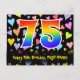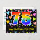 El frente de este diseño de tarjeta postal de cumpleaños emocionante, colorido y divertido presenta un gran número "75" con un patrón inspirado en gradiente de espectro de arcoíris. También presenta el mensaje "Feliz cumpleaños 75" y un nombre de destinatario personalizado. La parte delantera también tiene un patrón colorido y vibrante de corazones amorosos. La parte trasera presenta un mensaje de saludo de cumpleaños personalizado, o quizás podría estar en blanco si se desea escribir un mensaje a mano en su lugar. Una tarjeta postal de cumpleaños personalizada como esta podría ser una forma divertida de enviar un mensaje para celebrar el cumpleaños número setenta y cinco de alguien. Las tarjetas postales como esta también podrían usarse para invitar a los invitados a una fiesta de cumpleaños o celebración que se organice para alguien que cumple 75 años.