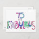 Tarjeta de cumpleaños 75 y fabulosa. Tarjeta postal de cumpleaños feliz 75