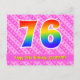 El frente de este diseño de tarjeta postal de cumpleaños animado, divertido y cariñoso presenta un gran número "76" con un patrón inspirado en el gradiente del espectro del arcoíris, junto con el mensaje "Feliz cumpleaños 76", y un nombre de destinatario personalizado. La parte delantera presenta además un patrón alegre de formas de corazón y rayas de color rosa claro y rosa oscuro. La parte trasera presenta un mensaje de saludo de cumpleaños personalizado, o quizás podría estar en blanco si se desea escribir un mensaje a mano. Una tarjeta postal de cumpleaños personalizada como esta podría ser una forma divertida de enviar un mensaje para celebrar el cumpleaños número setenta y seis de alguien. Tarjetas postales como esta también podrían usarse para invitar a invitados a una fiesta de cumpleaños o celebración que se organice para alguien que cumple 76 años.