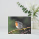 Robin encaramado en una pequeña rama de un árbol (Robin europeo) Lancashire, Reino Unido