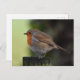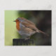 Robin europeo en un poste de madera Lancashire, Reino Unido