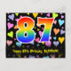 El frente de este divertido, colorido y emocionante diseño de tarjeta postal temática de cumpleaños presenta un gran número "87" con un patrón inspirado en gradiente de espectro de arcoíris. También presenta el mensaje "Feliz cumpleaños 87" y un nombre de destinatario personalizado. La parte delantera también tiene un patrón colorido y vibrante de corazones amorosos. La parte trasera cuenta con un mensaje de saludo de cumpleaños editable, o quizás podría ser borrado y dejado en blanco si se desea escribir un mensaje a mano en su lugar. Una tarjeta postal de cumpleaños personalizada como esta podría ser una forma divertida de enviar un mensaje en celebración del cumpleaños número ochenta y siete de alguien. Tarjetas postales como esta también podrían ser utilizadas para invitar a los invitados a una fiesta de cumpleaños o celebración que se organice para alguien que está cumpliendo 87 años. [~Z0000448]