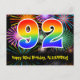 Postal 92 Cumpleaños – Divertido patrón de fuegos artific