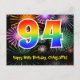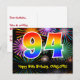 Postal 94 Cumpleaños - Patrón Divertido de Fuegos Artific