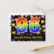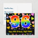 El frente de este diseño de tarjeta postal de cumpleaños colorido, cariñoso y emocionante presenta un gran número "96" con un patrón de gradiente de espectro de arcoíris inspirado. También presenta el mensaje "Feliz cumpleaños 96", y un nombre de destinatario personalizado. La parte delantera también tiene un patrón de fondo de formas de corazón cariñosas coloridas y vibrantes. La parte trasera presenta un mensaje de saludo de cumpleaños personalizable, o quizás podría estar despejado y dejado en blanco si se va a escribir un mensaje a mano en su lugar. Una tarjeta postal de cumpleaños personalizada como esta podría ser una forma divertida de celebrar el cumpleaños número noventa y seis de alguien. Las tarjetas postales como esta también podrían usarse para invitar a invitados a una fiesta de cumpleaños que se celebra para alguien que cumple 96 años.