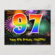 Postal 97 cumpleaños - divertido patrón de fuegos artific
