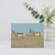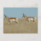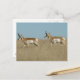 Postal de Pronghorn Antelope Bucks. Dos bonitos antílopes caminan a través de las praderas secas de pasto cortas a finales del otoño. Fíjense en el cuerpo más grande del trasero, es probable que sea el mayor de los dos.