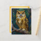 A beautiful postcard to say hello and keep in touch with friends and family with a gold and blue owl sitting on a tree branch. This illustration has an impasto oil painting style.