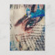 Postal A face and words abstract mixed media collage