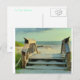 Una bonita fotografía de escalones cubiertos de arena que conducen a la playa del Golfo, con el agua, las hierbas marinas y el cielo de los pálidos acuáticos. también disponible en sellos postales y tarjetas de notas.