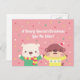 Desee a sus amigos y familiares un Navidad único y alegre con esta colorida y feliz postal de vacaciones. Presenta un improbable emparejamiento de oso polar con suéter verde y bufanda rayada roja y amarilla. Y una nutria con suéter amarillo con estampado de árbol de Navidad y un pequeño sombrero rojo de Santa. El mensaje de los Navidades del juego de palabras dice "¡A los Navidades especiales de Beary les gusta no Otter!" Confeti triangular en el fondo. El fondo rosado se puede cambiar en modo de personalización.