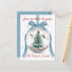 Celebrate the holiday season with this beautifully designed personalized Christmas Postcard, featuring a serene winter scene adorned with delicate hummingbirds and a snow-covered tree. The elegant blue ribbon and snowflake accents create a warm and inviting feel, perfect for sending heartfelt wishes from your family to theirs. Customize with your family name for a unique touch. Order today to add a festive touch. Pair with matching pieces.