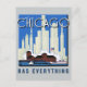 Un nuevo giro en un anuncio de póster vintage. El diseño antiguo se ha modificado para proporcionarle una versión nueva y única del diseño antiguo. Edificios estilizados en el fondo y bandera americana ondeando el Fuerte Dearborn. Aviones imaginarios sobrevolando. Alivio y sombras en el texto. Nuestras disculpas a "H.H."