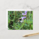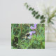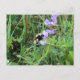 Tarjeta postal de abeja en flores silvestres moradas.