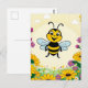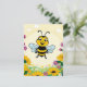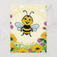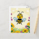 Personalizado sonriente feliz amarillo y abeja negra volando en la pradera con flores de colores