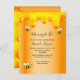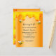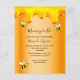 Elegante, divertida, invitación a la ducha de bebé en verano. Un falso metal dorado, con un fondo de Relieve metalizado y dulces goteos de miel. Decorado con abejorros sonrientes felices. Con el texto: Mami to Bee y el nombre de la madre para ser escrita con un estilo de escritura moderno con letras a mano. Cartas negras. Neutralidad de género.