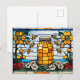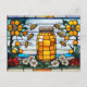 Postal Abejas de Miel de Vidrio Pintado y Tarro de Miel
