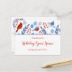 Festividad de pájaros rojos y azules y frontera botánica Holiday Open House postal. Diseño cuidado y alegre con aves estilizadas, hojas y conos de pino. Perfecto para pasar unas vacaciones o Navidades casuales. Personaliza con tu propia información.