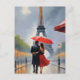 Pasee por las encantadoras calles de París con este impresionante cuadro que capta la esencia del amor en medio del encanto atemporal de la ciudad. Una pareja, elegantemente vestida, comparte un momento tierno bajo un vibrante paraguas rojo, creando un sorprendente contraste contra los adoquines empapados en la lluvia. La Torre Eiffel, un símbolo eterno de romance, se eleva majestuosamente en el fondo nebuloso, su silueta es una promesa de sueños y aventuras.