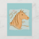 tonos marrones ilustracion de caballo con el texto "Abraza un caballo hoy" en la postal