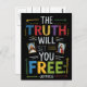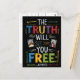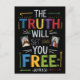 Una persona parada en un rayo de luz, rodeada de sombras, con los brazos extendidos y una mirada de alivio en su cara al aceptar la verdad y liberarse de las cadenas del engaño