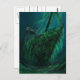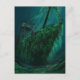 Un naufragio cubierto de algas se encuentra en el suelo del océano, bañado por un resplandor espeluznante.