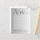 Postal Abril Calendario Gris Moderno Mensual 2025