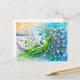 Postal Abstract Peacock in Spring with Snow and Flower