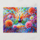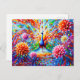 Postal Abstract Peacock with Colorful Dahlias Autumn