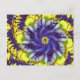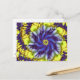Formas y colores tomados de fotos de paneles de jardín, dispuestos en una mandala floral de azul brillante, morado y amarillo.