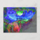Una pintura acuarela con una amapola azul abstracta. Obra original de H. Cooper.